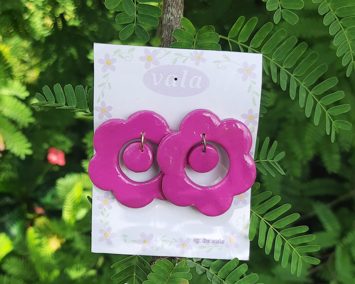 Aretes hibisco. Medidas: 6.5 cm Disponible en: fuscia, rosa, azul cielo, indigo, rojo.